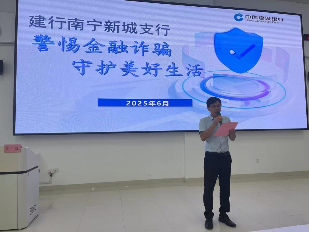 活动伊始,建行南宁新城支行的党员业务骨干围绕常见金融诈骗手段,如电信网络诈骗、校园贷陷阱、虚假投资理财等内容,结合真实案例为同学们进行了深入浅出的讲解,提醒同学们在日常生活中要提高警惕,不轻易相信陌生人的信息,保护好个人隐私,遇到可疑情况及时与银行、警方沟通。