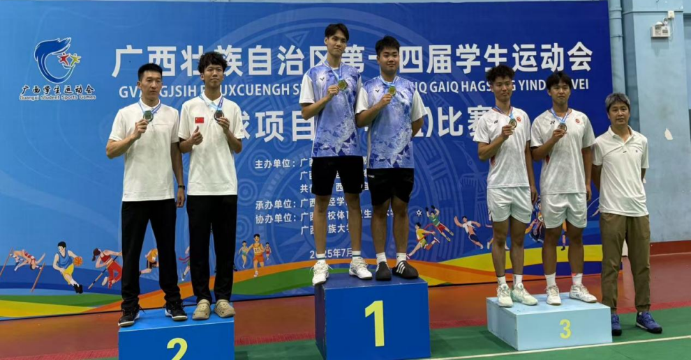 7月11日,羽毛球(大学组)比赛在广西财经学院落下帷幕。面对全区58所院校的强劲对手,我校由体育运动学院小球教研室老师带队的羽毛球代表队敢打敢拼,最终以三金一银一铜的辉煌战绩收官,尽显我校在羽毛球项目上的深厚底蕴与强劲实力。