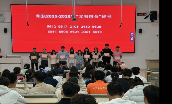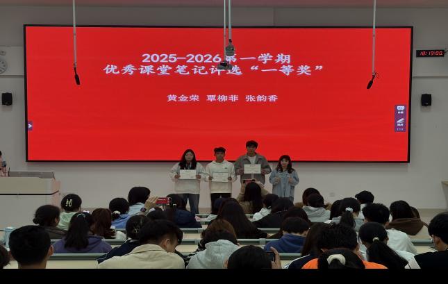 为深入落实立德树人根本任务,扎实推进“三全育人”综合改革,进一步端正校风、浓郁学风、优化班风,表彰先进典型,营造“勤学、善思、笃行、求新”的优良育人氛围,有效引导学生坚定理想信念、锤炼扎实本领,2025年12月23日晚,我院团委于教学楼南101教室举行学风建设月“文明宿舍”与“优秀课堂笔记”评选颁奖仪式。学院团委副书记黄薪妃出席仪式,获奖学生及宿舍代表共同参与。