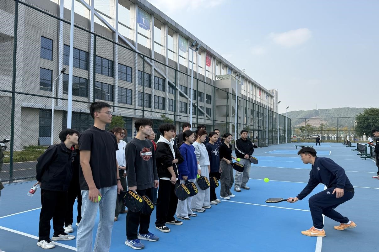 随后进入匹克球运动教学、体验与竞技环节。教师党员朱宝玉讲解基本规则、击球技巧与安全事项后,师生充分热身、基础练习,很快掌握握拍、发球等基本技能。分组竞技中,各队成员精神饱满、配合默契,巧妙运用策略,展现拼搏进取的体育精神与凝心聚力的团队风貌。最后,大家围坐交流,纷纷表示匹克球运动不仅锻炼了反应能力与身体素质,更让人体会到策略协作与沉着应对的重要性,这些在运动中锤炼的品格与意识,将转化为学习、工作和生活的动力。