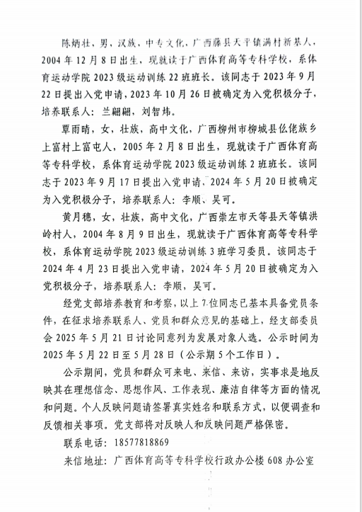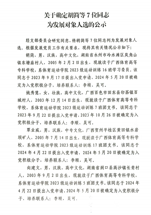 关于确定关冬梅等6名同志为发展对象人选的公示