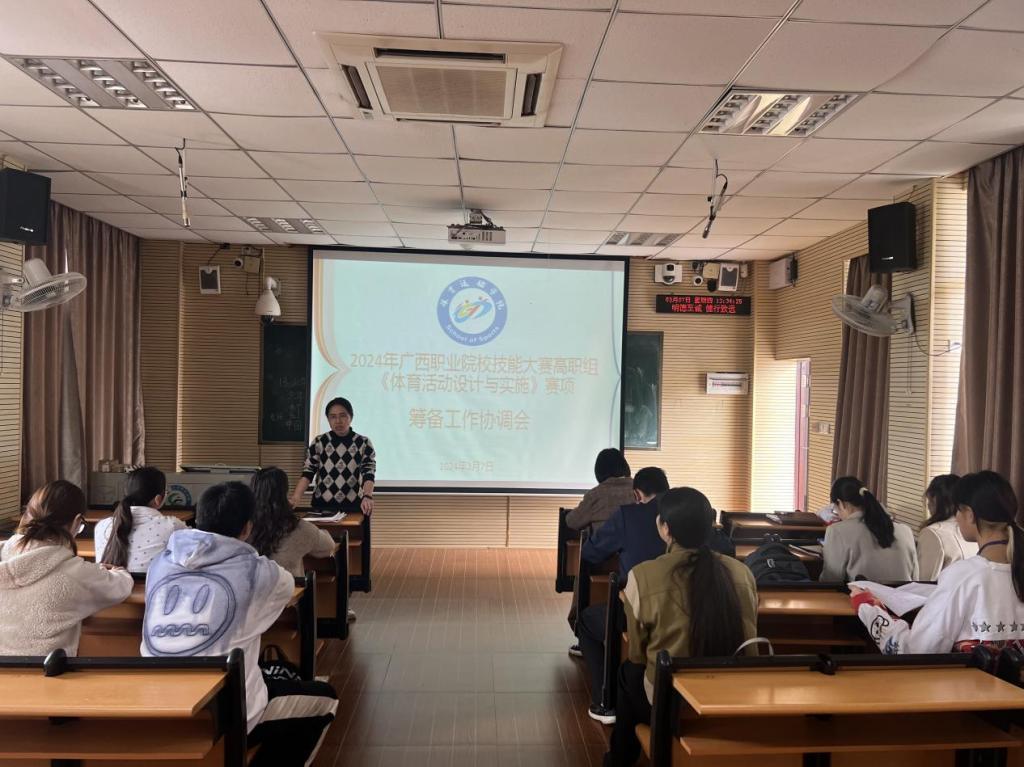 为进一步贯彻落实2024年广西职业院校技能大赛高职组《体育活动设计与实施》赛项筹办相关会议精神,加快推进大赛各项工作筹办进度,发挥自治区样板党支部战斗堡垒作用和教师党员的先锋模范作用,3月7日中午,体育运动学院教师第一党支部在301教室召开大赛筹备工作协调会。