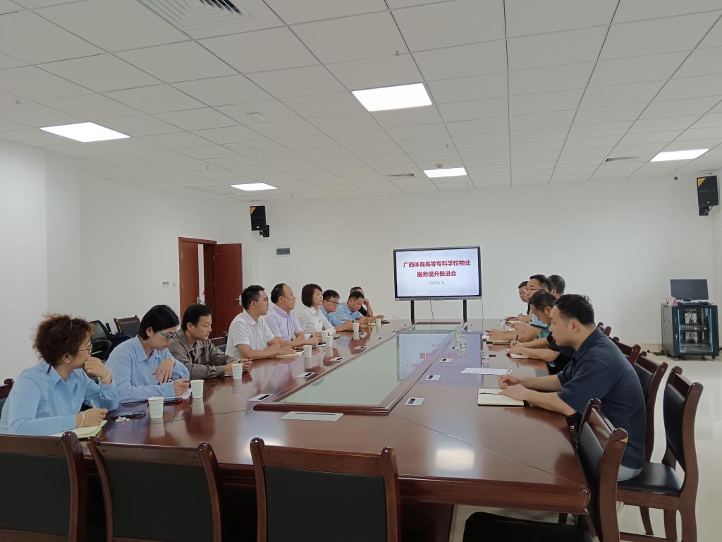 2025年7月11日下午,广西体育高等专科学校后勤保卫处联合学工处组织物业公司主要负责人及各业务板块主管,在712会议室召开物业服务提升推进会,会议围绕聚焦服务提质与暑期保障工作精准发力。