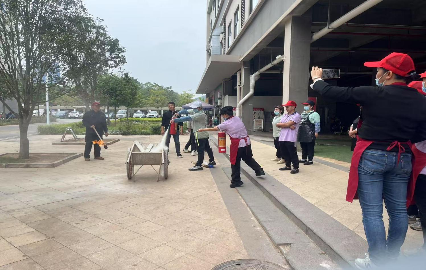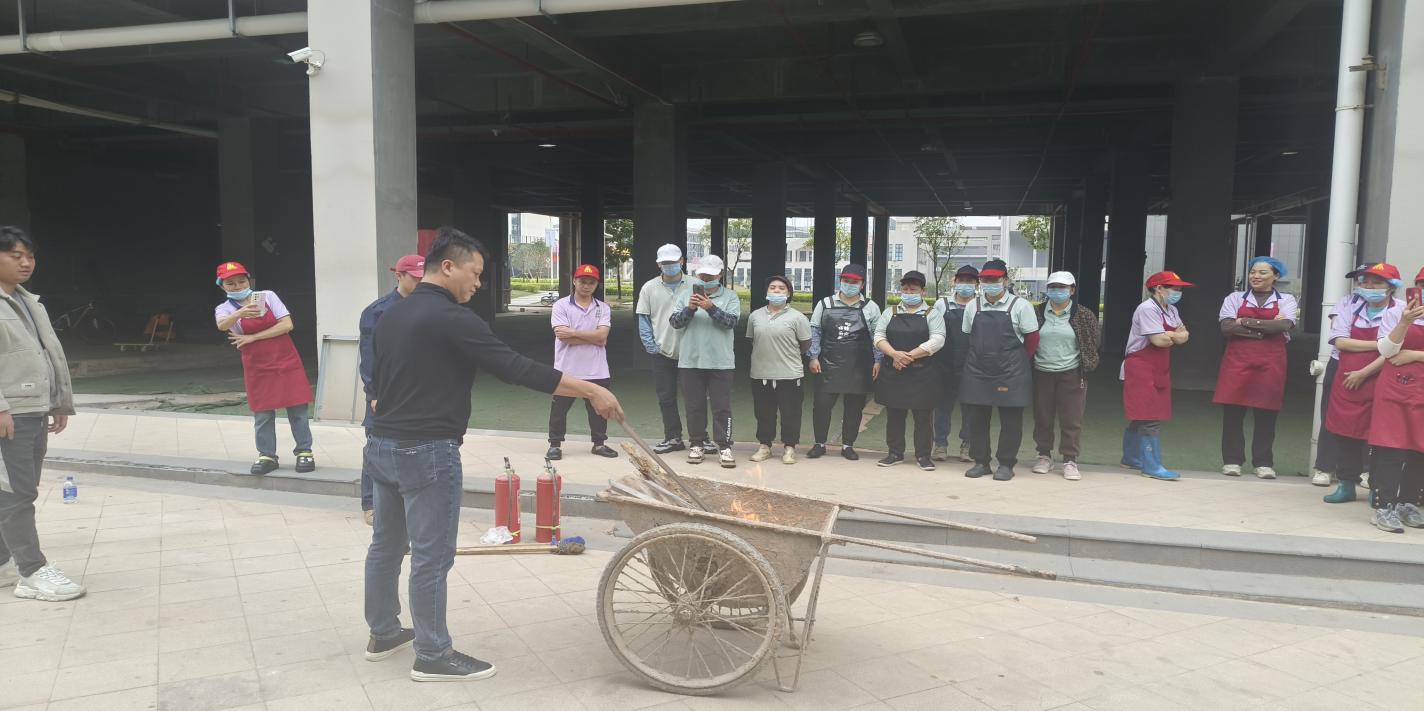 为增强培训效果,本次活动设置了模拟火灾应急演练环节。活动模拟二楼食堂操作间因电路短路突发“火情”,现场员工在听到警报后,迅速按照预定疏散路线,用湿毛巾捂住口鼻,弯腰低姿快速有序地撤离至安全区域。同时,部分员工熟练使用灭火器对“初期火灾”进行扑救。整个过程紧张有序、配合默契,切实提升了广大食堂员工的消防知识和应急技能,从根本上杜绝消防安全隐患,达到了消防演练预期效果。