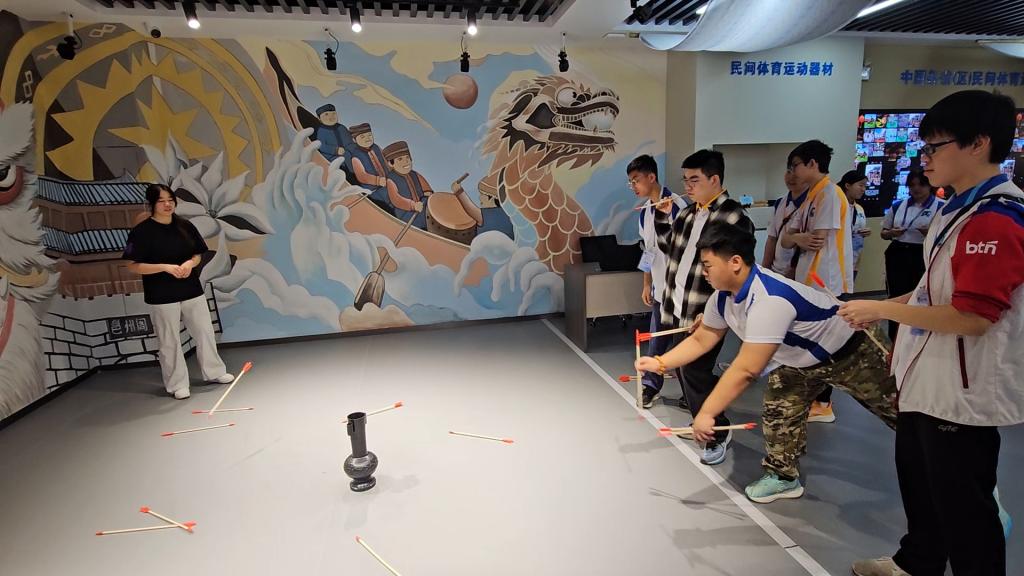上午9时30分,交流活动正式拉开帷幕。警讯团成员首先参观了我校民族体育展示馆。在学校专业讲解员的引导下,警讯团成员详细了解了中华民族传统体育项目的发展历程与文化内涵。随后,警讯团成员们们亲身体验了投壶、蹴鞠等民族传统体育项目,在趣味互动中感受中华优秀传统文化的独特魅力。