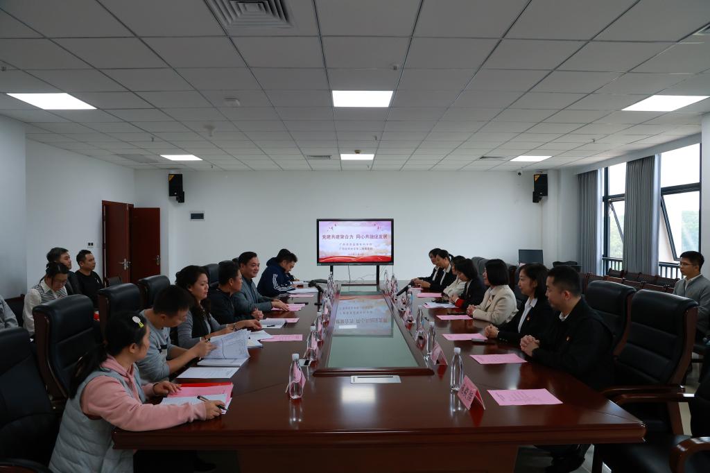 10 月 24 日,广西医科大学第二附属医院廖灵敏副主任带领12 人团队莅临我校,与学校机关党总支携手开展以 “党建共建聚合力 同心共融促发展” 为主题的联合共建活动,学校党委副书记邱团,各机关党支部代表、学生代表参加此次活动。