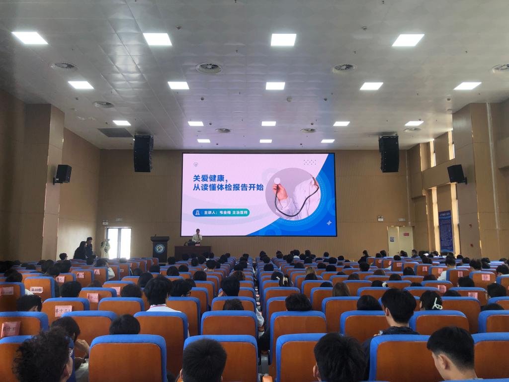 随后,在学校学术交流中心三宁报告厅开展专题讲座。韦金梅主治医师率先作《关爱健康,从读懂健康体检报告开始》的讲座,她结合临床案例解读体检指标含义及健康问题应对措施,并耐心解答师生疑问。