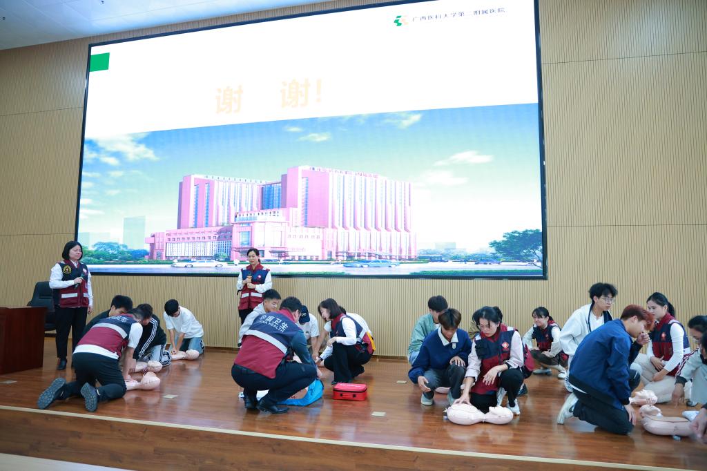 在实操环节,师生踊跃参与实践,在医护团队指导下掌握急救技能,纷纷表示收获颇丰。活动现场互动热烈,有效提升了师生健康意识和急救能力。