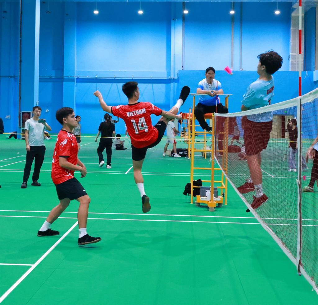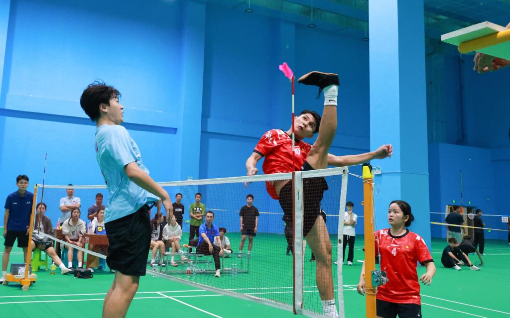 本次交流赛设置男子团体、女子团体、男子双人、女子单人、混合双人5个项目,覆盖毽球运动主要竞技类别。越南毽球队作为国际毽球领域传统强队,12名参赛队员中6人系现役国家队成员,竞技水平长期处于领先地位;我校毽球队近年发展迅速,3名队员为现役中国国家队队员,且在2025年亚洲毽球锦标赛中取得优异成绩,展现出强劲的成长势头。