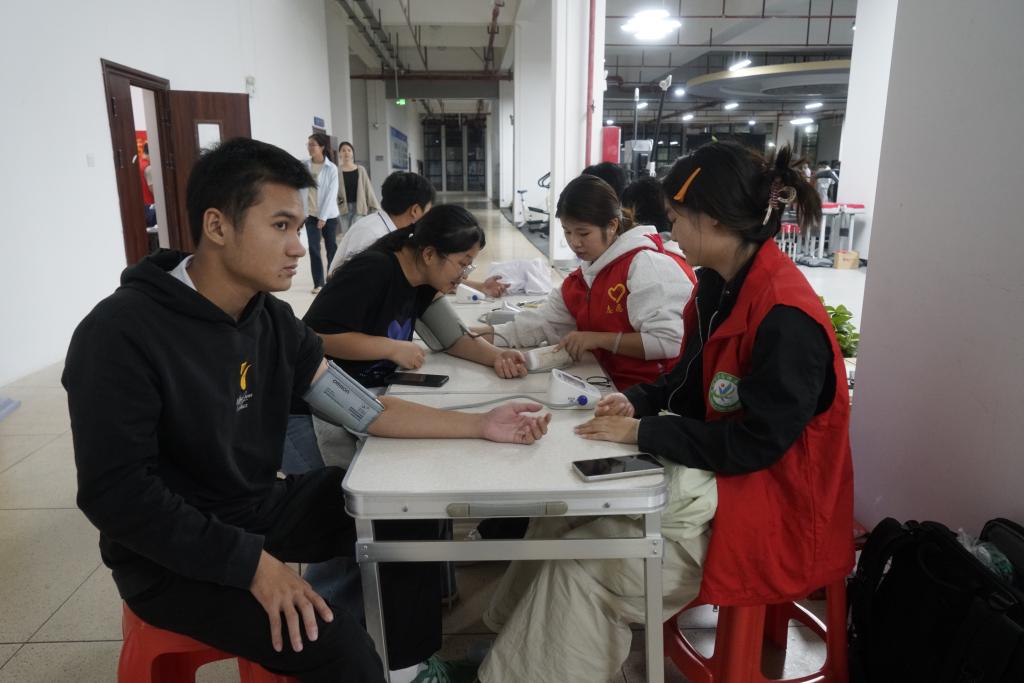 志愿者为同学提供血压测量、健康知识科普服务