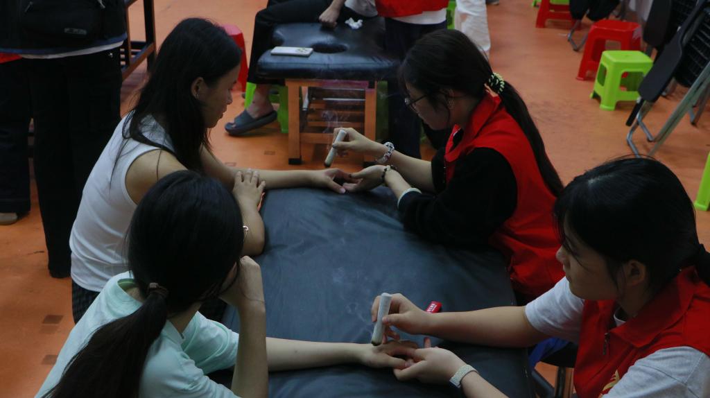 志愿者为同学提供艾灸服务