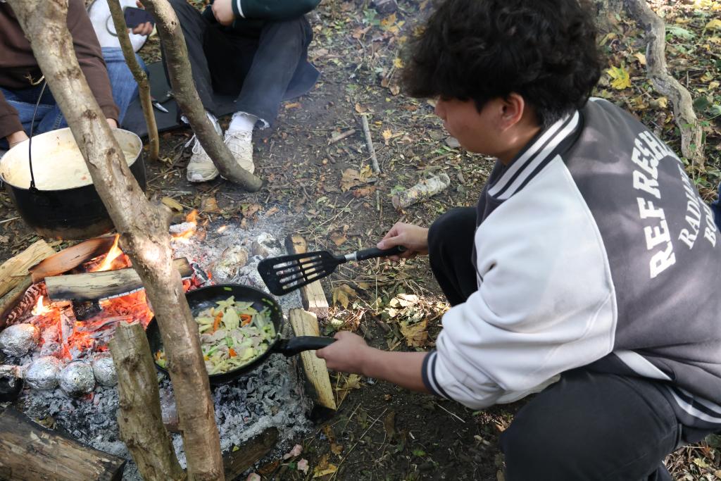 我校学生在户外露营区亲手烹饪中式菜肴