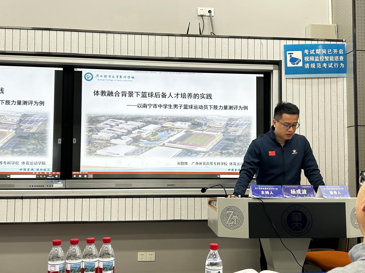 体育运动学院刘智炜老师在运动训练学分会报告了《体教融合背景下篮球后备人才培养的实践——以南宁市中学生男子篮球运动员下肢力量测评为例》。该研究基于详实的本地化数据,将理论与实践紧密结合,为探索科学化的篮球后备人才培养路径提供了宝贵的实证案例。