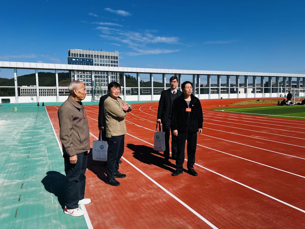 座谈会后,韦建勋书记带领退休同志们实地参观了新校区校园及运动场馆。在参观过程中,韦书记详细介绍了新校区的规划设计、建设历程和功能布局,重点讲解了运动场馆的先进设施与使用情况。看着窗明几净的教学楼、绿草如茵的校园环境和功能齐全的运动场馆,老同志们感慨万千,纷纷称赞学校在党委正确领导下发生的翻天覆地变化。“终于有了属于自己的美丽校园,场馆设施更是达到了高标准,这圆了几代体专人的夙愿!” 一位退休老教师激动地说。