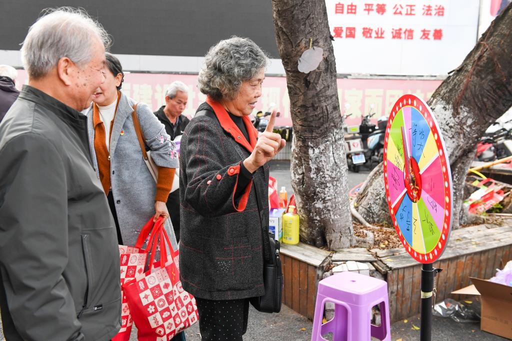 活动精心设置了转盘抽奖、趣味套圈、夹乒乓球、保龄足球、抛球进篮等多个项目,形式多样、趣味盎然。老同志们兴致勃勃地参与其中,或专注转盘抽奖,或轻松尝试套圈,或稳健夹取乒乓球,现场气氛热烈,笑声不断。各类游戏挑战成功后均可兑换相应奖品,让老同志们在轻松愉悦中满载而归。