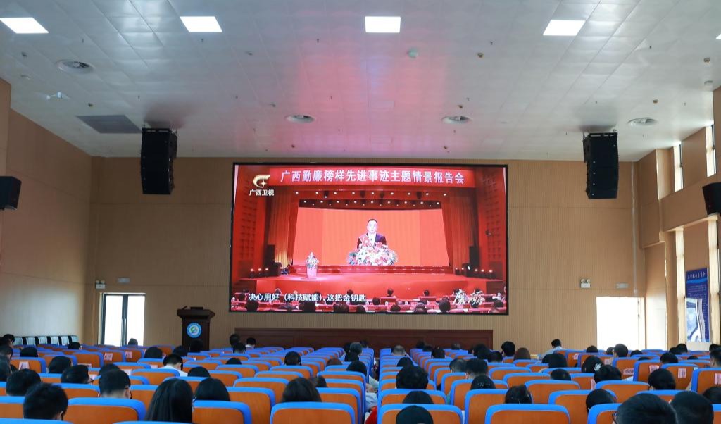 集中收看广西勤廉榜样先进事迹主题情景报告会实况录像现场