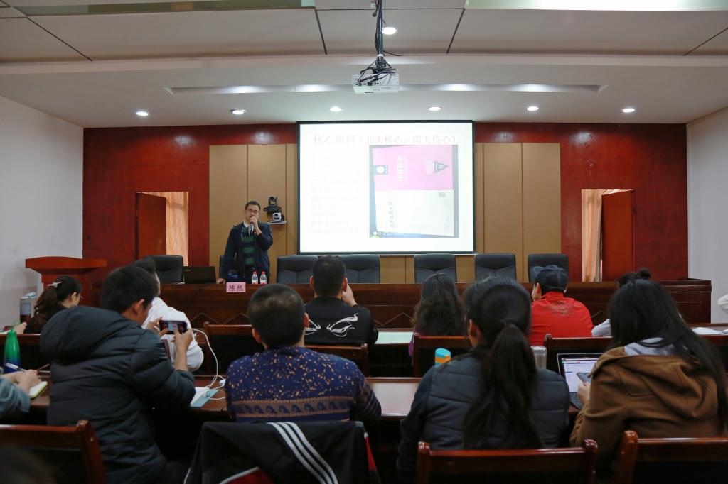 陈然副研究员以刊物介绍、科研热点(论文选题)和论文投稿须知三个问题导入,并结合他在《体育科技》和《运动精品》的审稿经验,为我校教师进行讲座。
