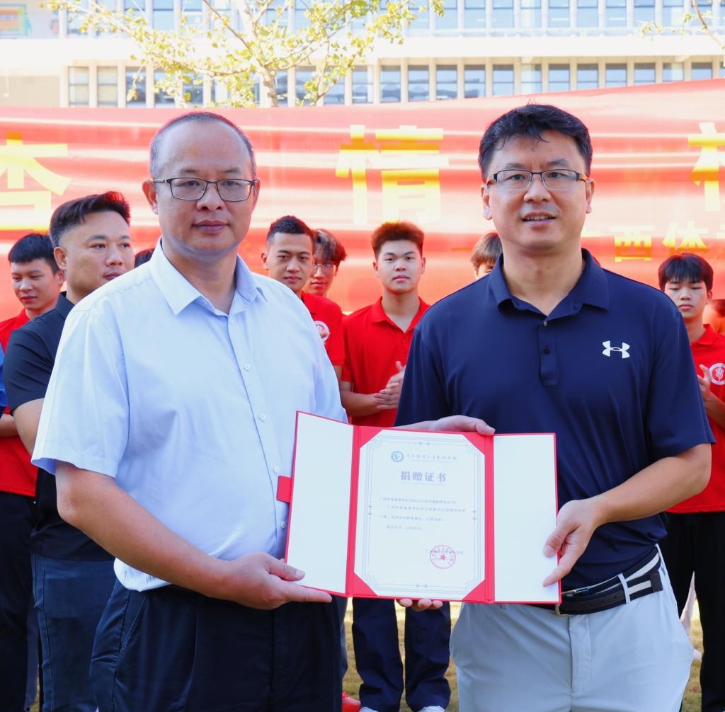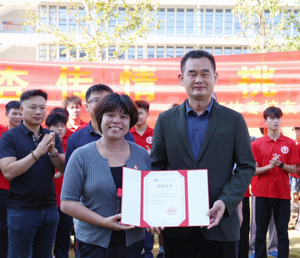 随后,覃世东副校长、黄昀副校长分别为校友代表颁发了捐赠证书,感谢校友们对学校事业发展的关心、对校园绿化环境建设的贡献。