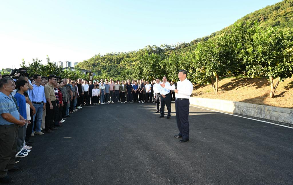 11月7日至8日,中共中央总书记、国家主席、中央军委主席习近平在广东考察。这是7日下午,习近平在梅州市梅县区雁洋镇南福金柚种植基地考察。 新华社发(肖翊 摄)