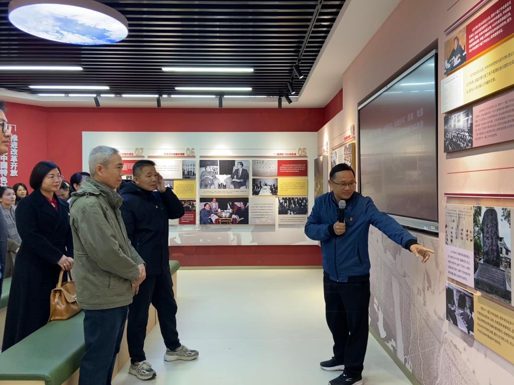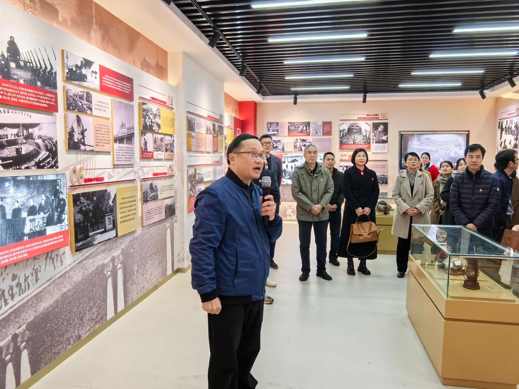 2025年11月19日,广西财经学院图书馆直属党支部和南宁市友衡学校党支部的党员参观我院中国共产党历史教育馆。学院党总支书记谢有长为党员们作全程讲解,并结合馆内的详实史料和珍贵图片,通过一个个感人的党史故事,生动阐述了伟大建党精神的科学内涵,回顾了中国共产党百余年奋斗的光辉历程,引导党员们从中汲取智慧和力量。