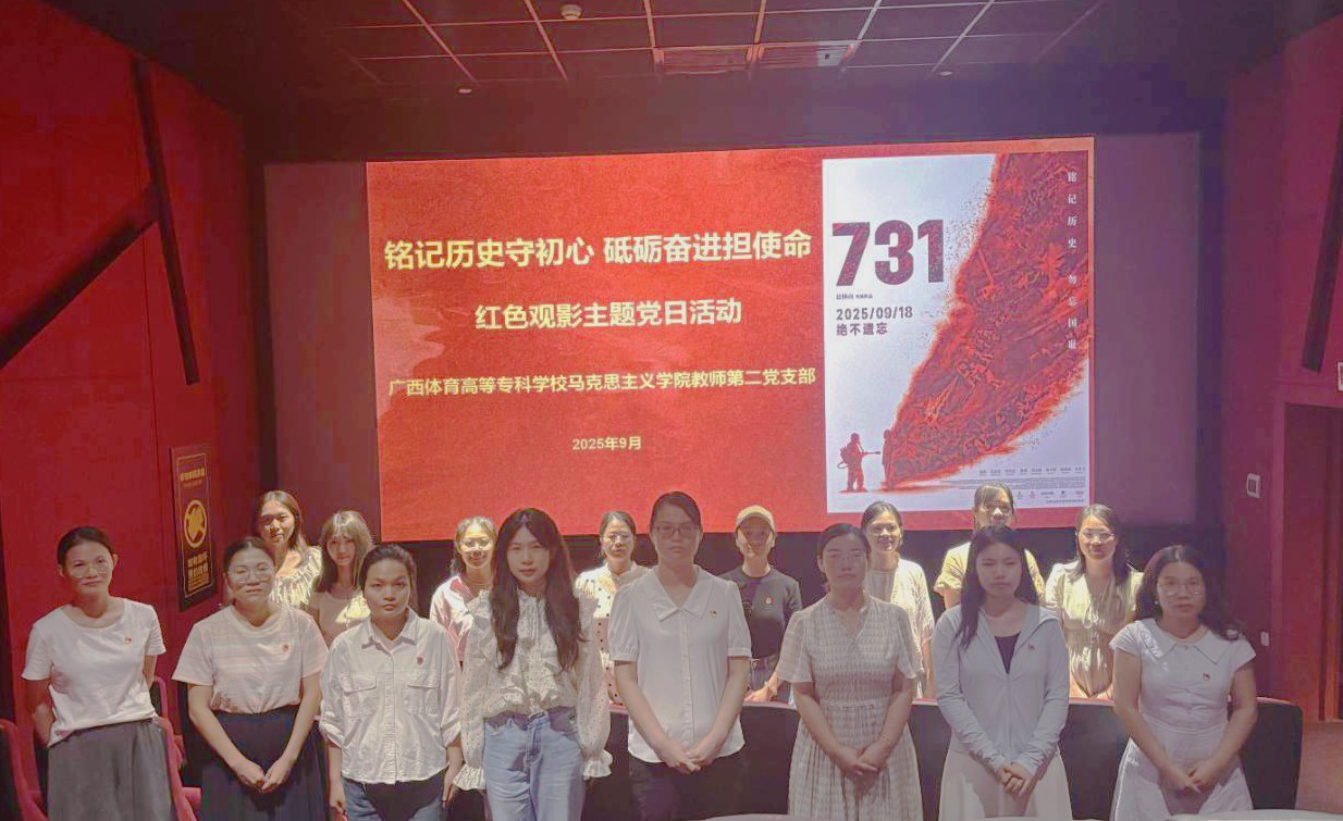 为纪念中国人民抗日战争暨世界反法西斯战争胜利80周年,铭记抗战历史,弘扬伟大抗战精神,进一步铸牢中华民族共同体意识,9月24日,我院教师第一、第二党支部全体党员联合广西共恒教育有限公司党支部党员集中观看历史题材电影《731》,开展“铭记抗战历史 汲取奋进力量”——铸牢中华民族共同体意识主题党日活动。