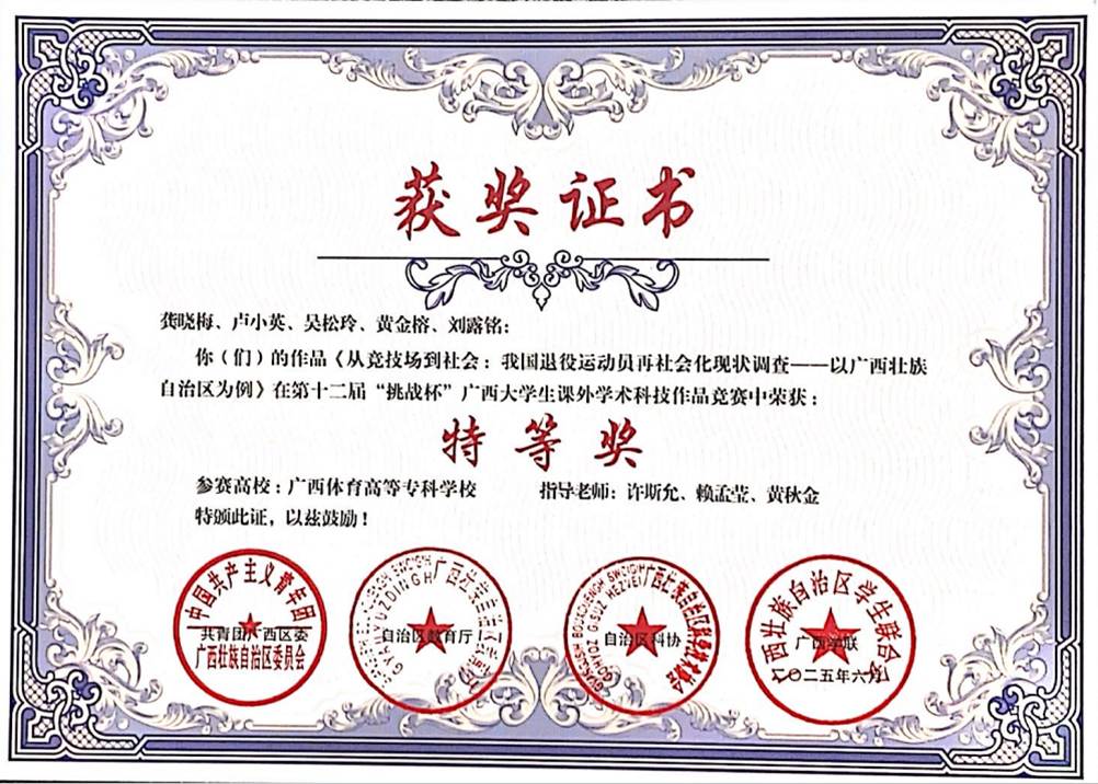 图3:新闻学生团队获2025“挑战杯”区特奖状