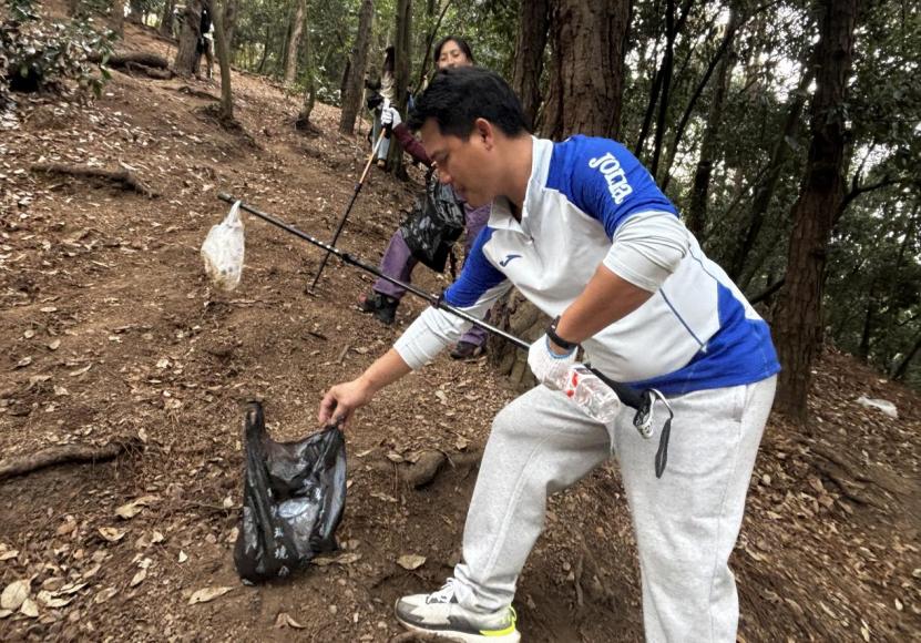 活动伊始,支部党员集体抵达指定地点,通过热身与团队建设,迅速凝聚合力、明确分工。随后,全体党员以昂扬姿态投身环保徒步实践。在全程约8公里的行进中,大家手持清洁工具,细致清理步道及周边的塑料瓶、包装袋等废弃物,以实际行动还原山林洁净面貌,成为绿水青山的守护者和宣传员。