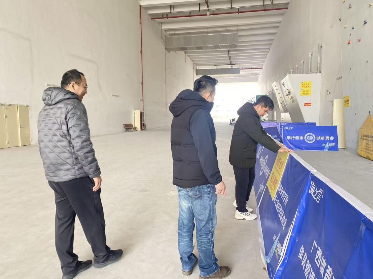 检查组核查攀岩墙安全防护措施