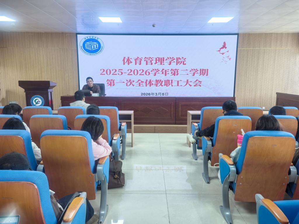 3月6日上午,体育管理学院2026年春季学期第一次全体教职工大会在学术交流中心301会议室召开。会议旨在统一思想、明确目标,为新学期各项工作开好局、起好步奠定坚实基础。学院领导班子及全体教职工参会。