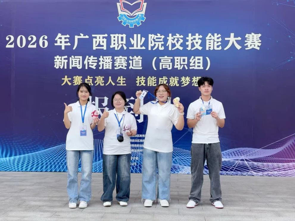 近日,2026 年广西职业院校技能大赛多项赛项顺利落幕。我院新闻采编与制作、研学旅行管理与服务两个专业的参赛队伍,分别参加新闻传播赛道与旅游赛道比赛,均圆满完成赛事比拼,展现出扎实的专业技能与良好的团队风貌。