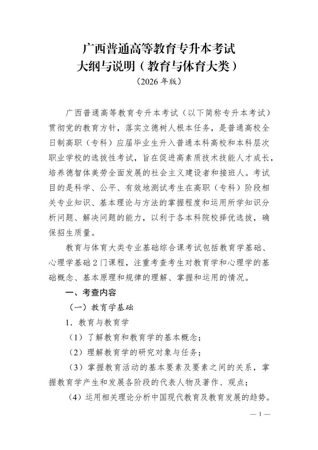广西普通高等教育专升本考试大纲与说明(教育与体育大类)