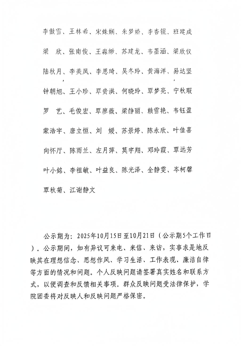 关于拟推荐王倩雯等110名同志为入党积极分子候选人的公示