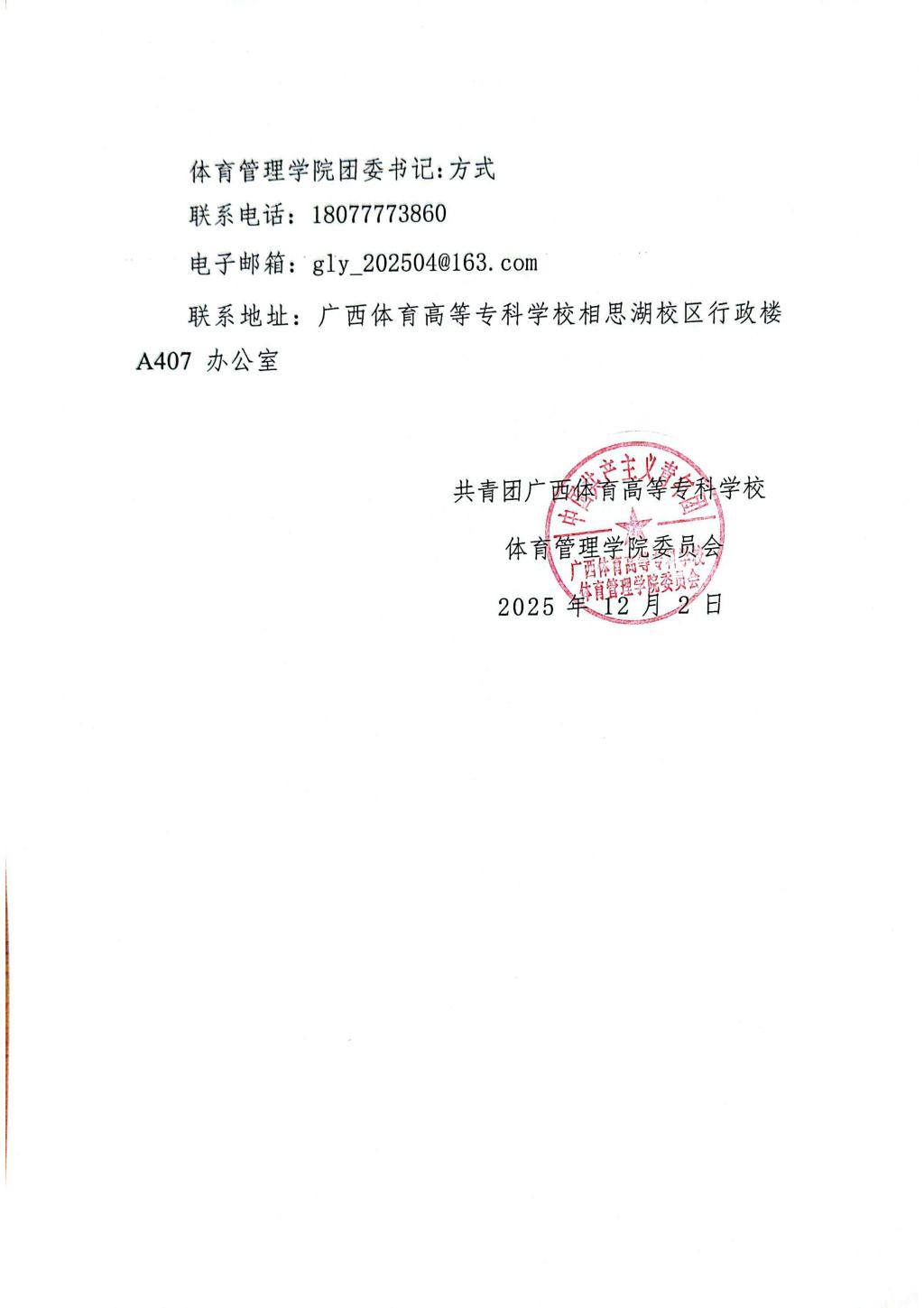 关于拟推荐甘以铅等26名同学为广西体育高等专科学校体育管理学院2024年度优秀志愿者的公示