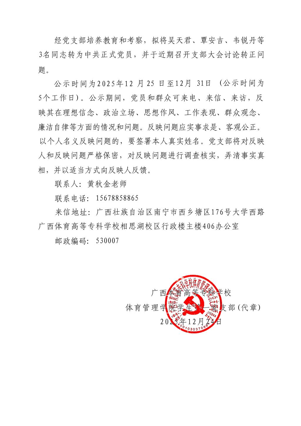 关于拟将吴天君等3名同志转为中共正式党员