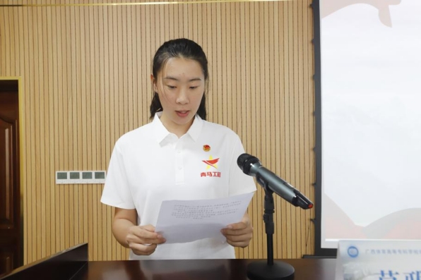 第五期“青马班”学员代表黄旖旎发言时表示,希望以此次“青马班”学习为契机,深耕理论、锤炼本领,努力成长为合格的马克思主义拥护者、实践者、传播者,为凝聚学员共识、强化思想引领,助力大家成长为新时代青年先锋筑牢根基。