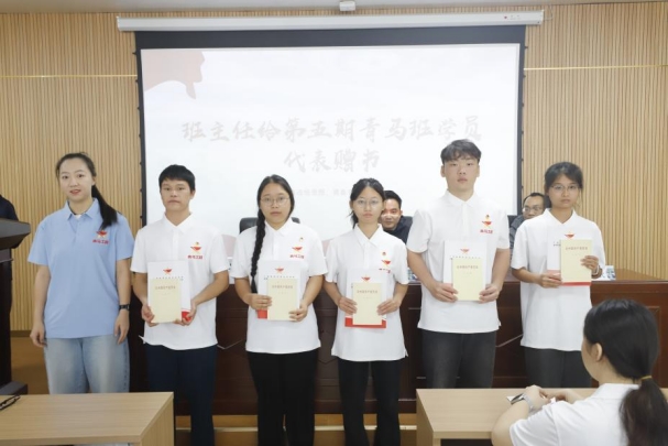 随后,黎智达为2025年“青马班”授旗,桑恬为2025年“青马班”学员代表赠书。