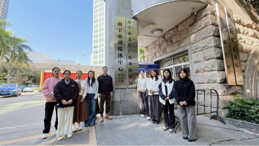 为深入了解毕业班学生实习情况,11月15日,我院新闻教研室教师团队及2023级辅导员前往南宁市融媒体中心及南宁广播电视台,进行2023级新闻采编与制作专业学生毕业实习中期检查与走访交流。