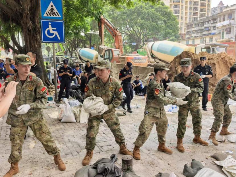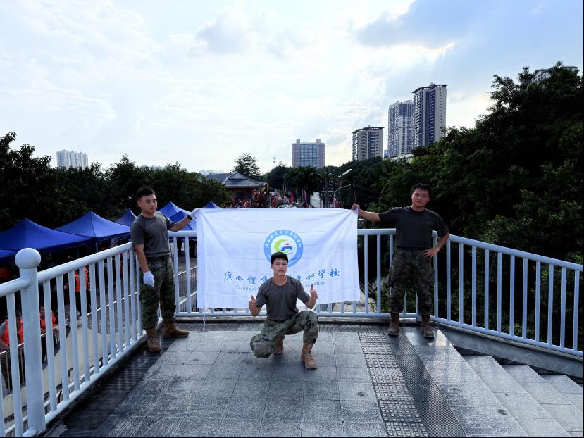 10月9日,北大桥右侧堤外停车场二坑泵站出现塌陷险情,接到西乡塘区人民武装部函请后,我院休闲体育专业学生张力文在学校协调支持下,迅速投身南宁抗洪抢险任务,用行动诠释双重身份的责任。