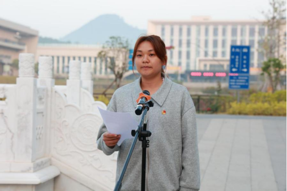 在“国旗下讲话”环节,2024级体育运营与管理10班陶小连同学作为学生代表发言。她回顾历史,表达对祖国的赤诚热爱,呼吁同学们铭记“落后就要挨打”的历史教训,坚定理想信念,增强国家意识,以青春力量维护民族团结,用实际行动传承爱国精神。