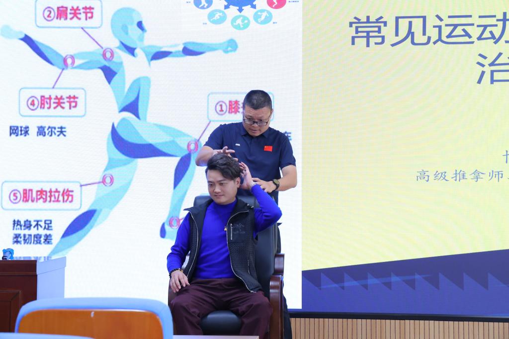本次培训构建了科学系统的课程体系,内容全面覆盖体适能理论、运动营养、运动损伤防护、乒乓球技术教学与考核、社会体育赛事组织等专业模块。学校副校长黄昀、教务科研处处长兰政、体育管理学院院长方安等多位专家亲授专题课程,深度融合理论讲授与实践分享,显著夯实了学员的专业素养与实战能力。黄昀副校长主讲的课程《运动损伤与康复》,通过理论阐释与实操演示相结合的方式,系统讲授运动损伤防护的关键要点与实际应用,授课内容详实、逻辑清晰,课堂反响热烈。
