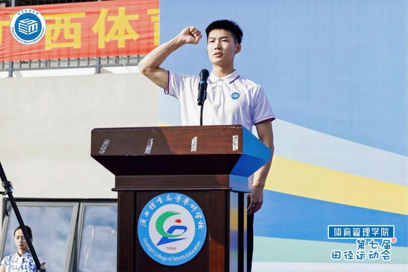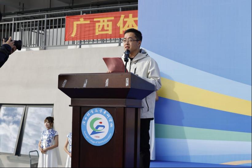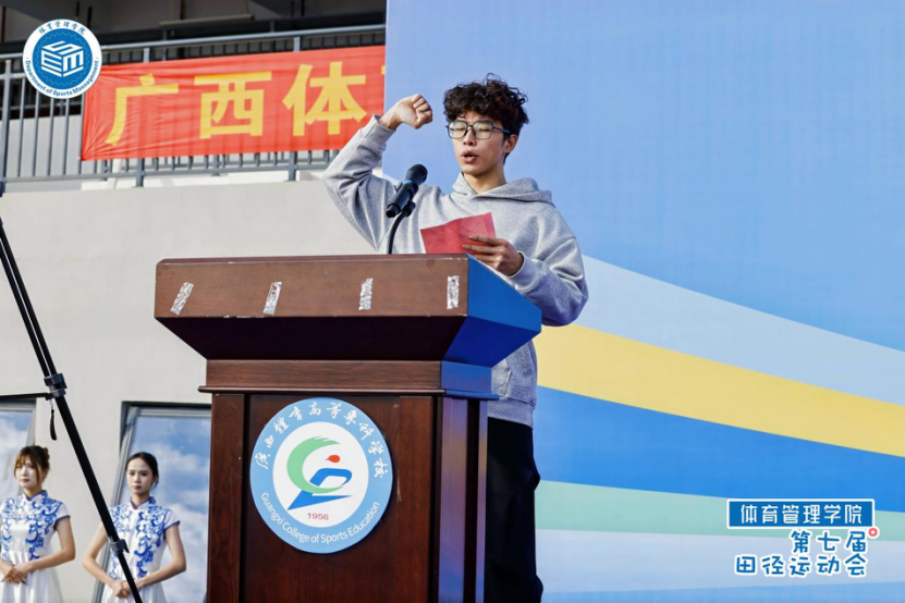 最后,由学校纪委书记罗黎造宣布广西体育高等专科学校体育管理学院第七届田径运动会开幕。