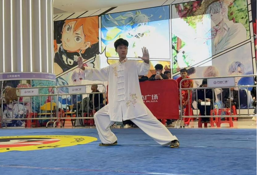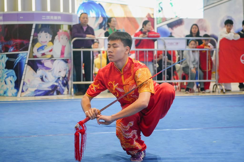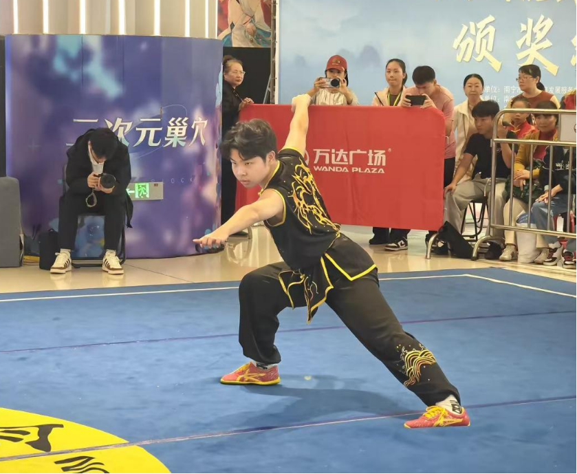 在男子组传统剑术的比赛中,甘文任同学为我校拿下首金,拉开了我校学子摘金夺牌的序幕。在之后的比赛中,梁开杨、李文轩、甘文任同学分别夺得传统南拳、42式太极剑、华拳项目的金牌,麦罗燚、李文轩同学分别获得传统南棍和42式太极拳项目的银牌,蒋律成等同学获得自选南拳等项目共3枚铜牌。