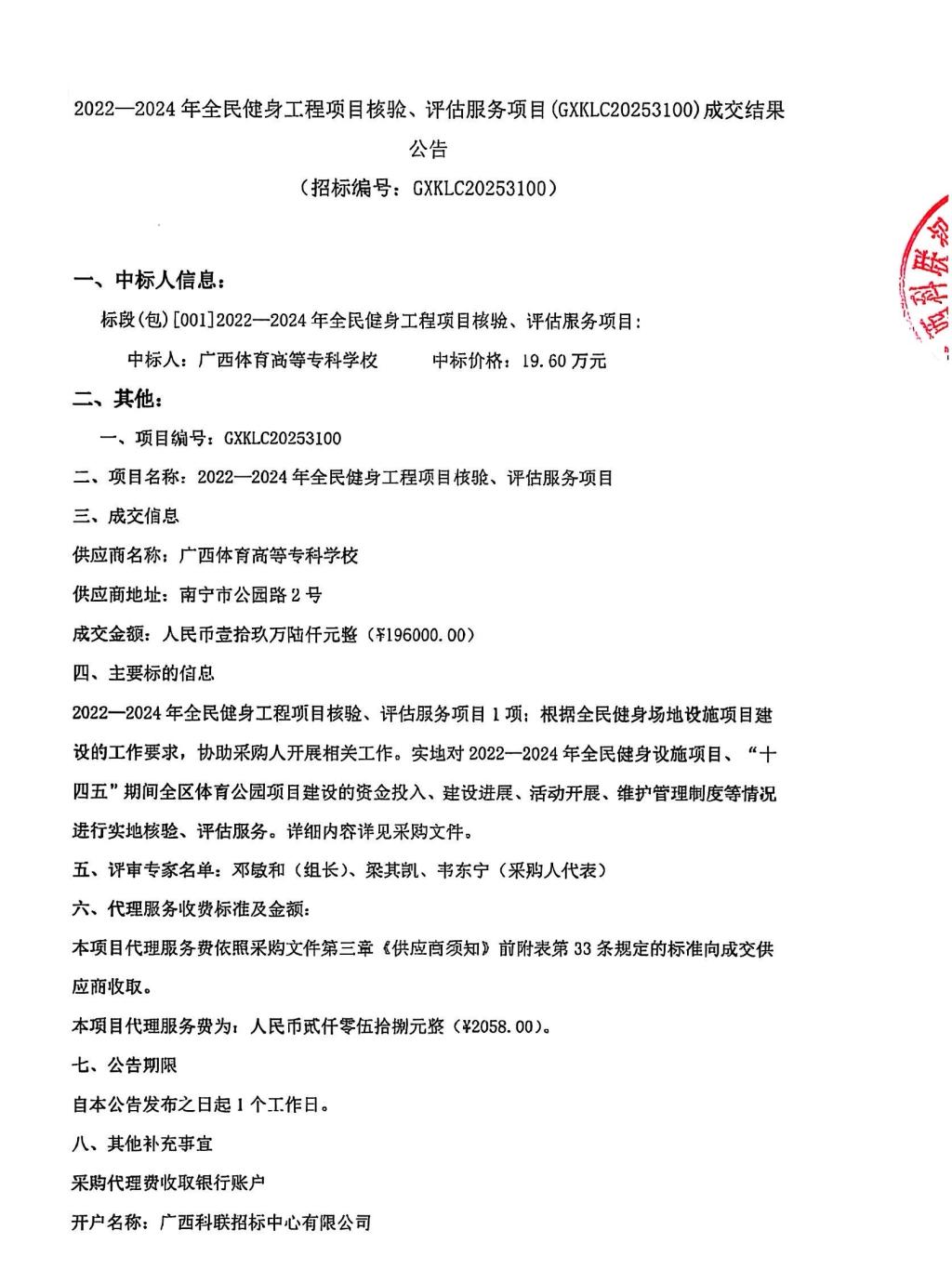 近日,我校凭借在体育场馆管理、体育工程评估领域的专业技术实力与丰富服务经验,成功中标自治区体育局“2022—2024年全民健身工程项目核验、评估服务项目”(项目编号:GXKLC20253100)。