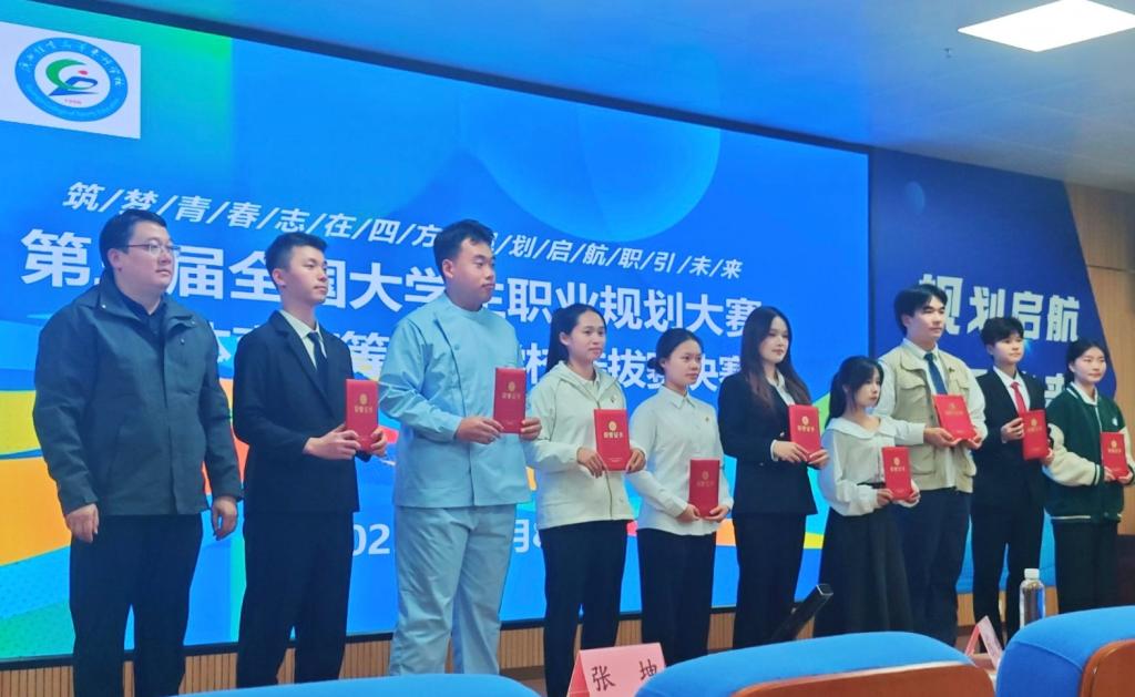 本次大赛旨在引导大学生树立正确的成才观、就业观和职业规划意识,提升就业竞争力与实践能力。赛事启动以来,学院高度重视、精心组织,通过专题辅导、模拟演练等多样化指导形式,为参赛学子精准赋能;同学们在比赛中深入剖析自我、精准定位职业方向、科学规划发展路径,在赛场中展现出过硬的专业能力、清晰的逻辑思维与昂扬的斗志,最终不负众望斩获佳绩——董兆艺同学勇夺金奖,李文康、包双、蒋云飞三位同学喜获银奖,实现赛事成绩与个人能力提升双突破。