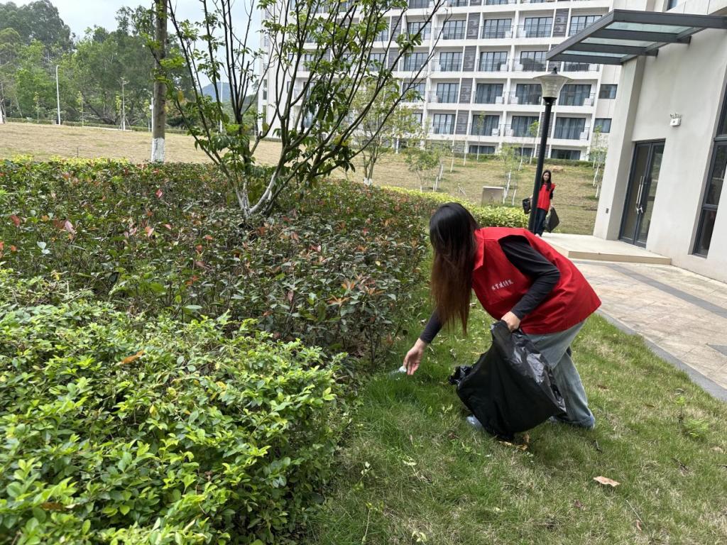 志愿者清理校园垃圾