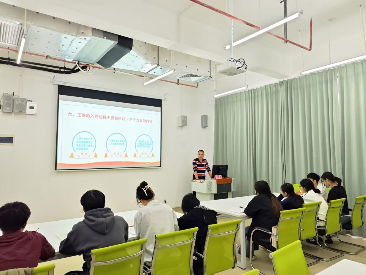 为深入学习贯彻习近平新时代中国特色社会主义思想,强化入党积极分子思想淬炼、筑牢信仰根基,2025年11月17日,学校党委委员、纪委书记罗黎造以《坚定理想信念 端正入党动机》为题,为体育建筑学院分党校第五期入党积极分子培训班学员带来一堂思想深刻、内涵丰富的专题党课。