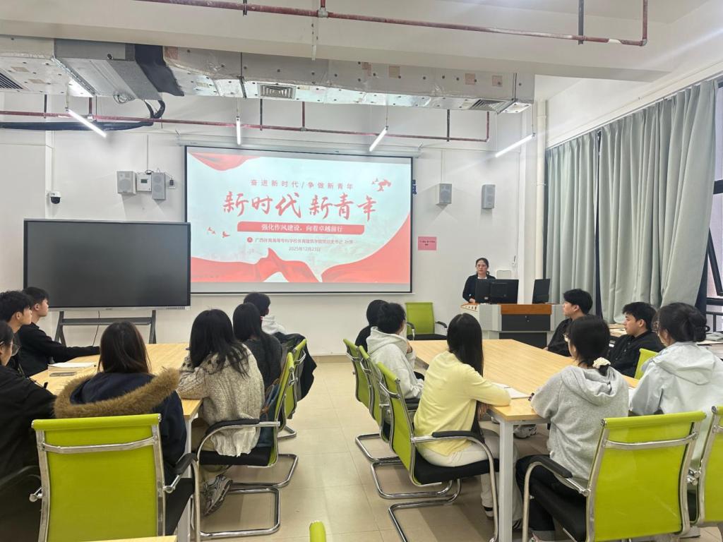 近日,学院党总支书记叶萍以《强化作风建设,向着卓越前行》为题,为团员青年讲授专题团课,深入贯彻党的二十大精神,引导青年传承优良作风、勇担时代使命。