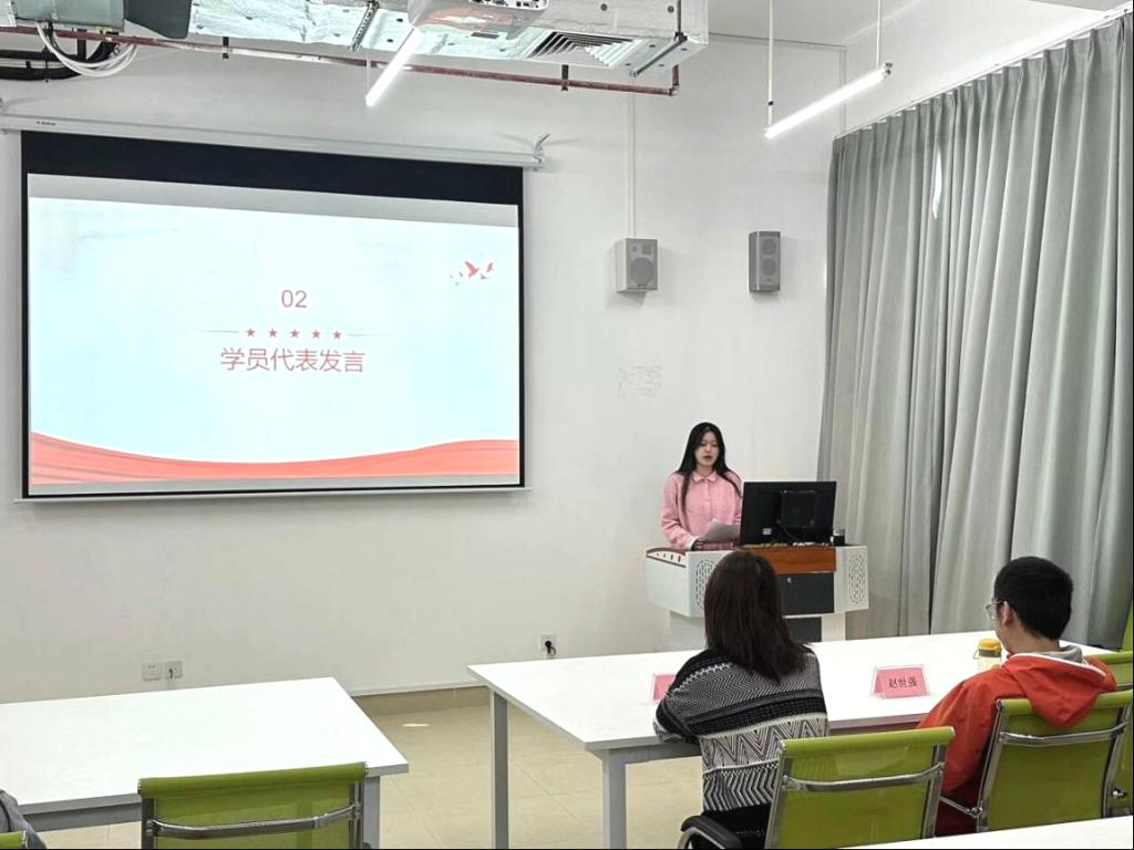 第二期校级“青马工程”培训班优秀学员代表董兆艺分享学习心得,勉励新学员要深入钻研理论学习、积极投身实践锻炼,以实际行动诠释新时代青年的责任与担当。