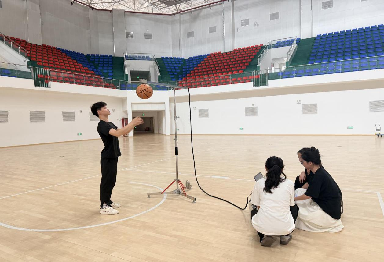 学生对木地板的篮球反弹率进行检测