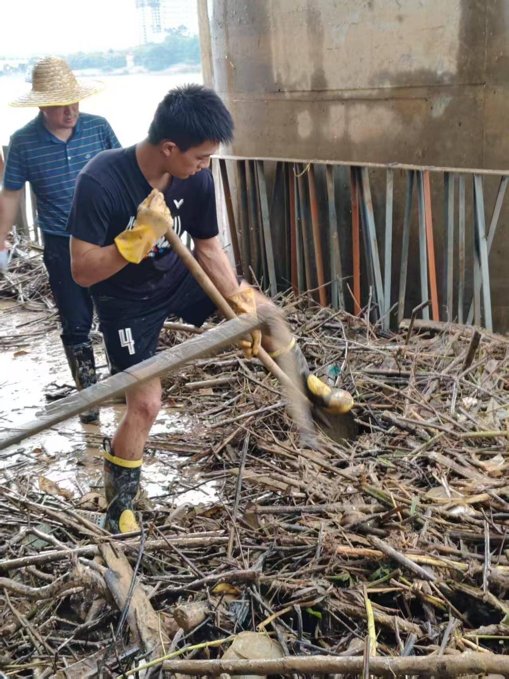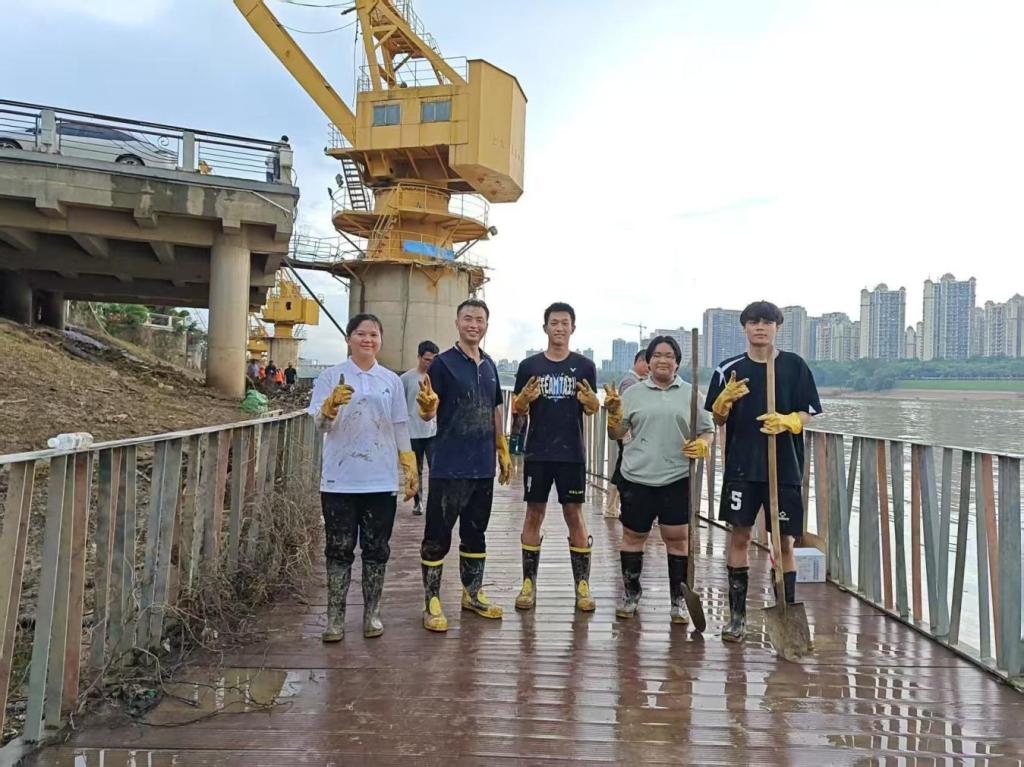 2025年国庆中秋双节期间,台风“桦加沙”“博罗依”“麦德姆”接连而至,叠加上游来水致南宁市邕江水位骤升,洪峰过后邕江北岸公园需及时恢复,我院在南宁市实习的2023级蓝春莉、田雨杨、李佳慧、李博轩四名学子主动请缨,第一时间加入清淤队伍,以“不怕脏、不怕累”态度高效完成清淤任务,助力沿岸恢复整洁、保障通行。